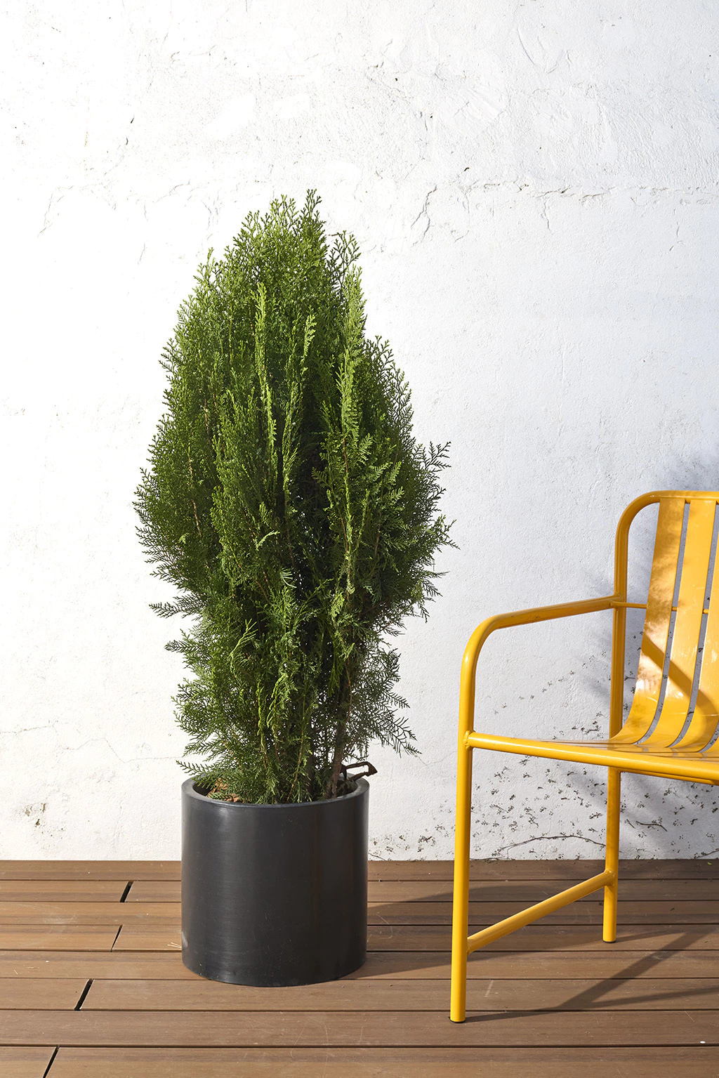 La Thuja Smaragd, es la planta más elegida para darle prolijidad y estilo a un jardín. Siempre verde, con un color intenso todo el año y una forma cónica natural que se mantiene sola. No necesitás saber de plantas: se ve bien sin que tengas que podarla ni darle cuidados complicados.